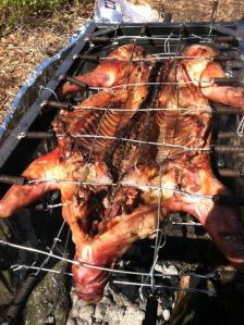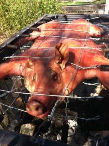 My friend Aaron Houck is a super fine cook! And he and his family know they can cook up a “sho nuff” piece of meat! I had the privilege of tasting this savory pig when he and my best friend Kim got married and let me tell you what, it was some kind of “Get in my Belly Good. The smell of it cooking all day can make your mouth water in anticipation of savoring the tasty pork. He places the pig between a baby mattress and smokes it all day. Just wanted to share these photos with our grocery lovers!