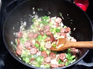 Add onions,celery, bell pepper and garlic. Sauté 3-5 additional minutes,stirring occasionally.