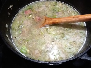 When peas are tender, add green onion, parsley, season to taste using salt, pepper, Cajun seasoning and Louisiana Hot Sauce.