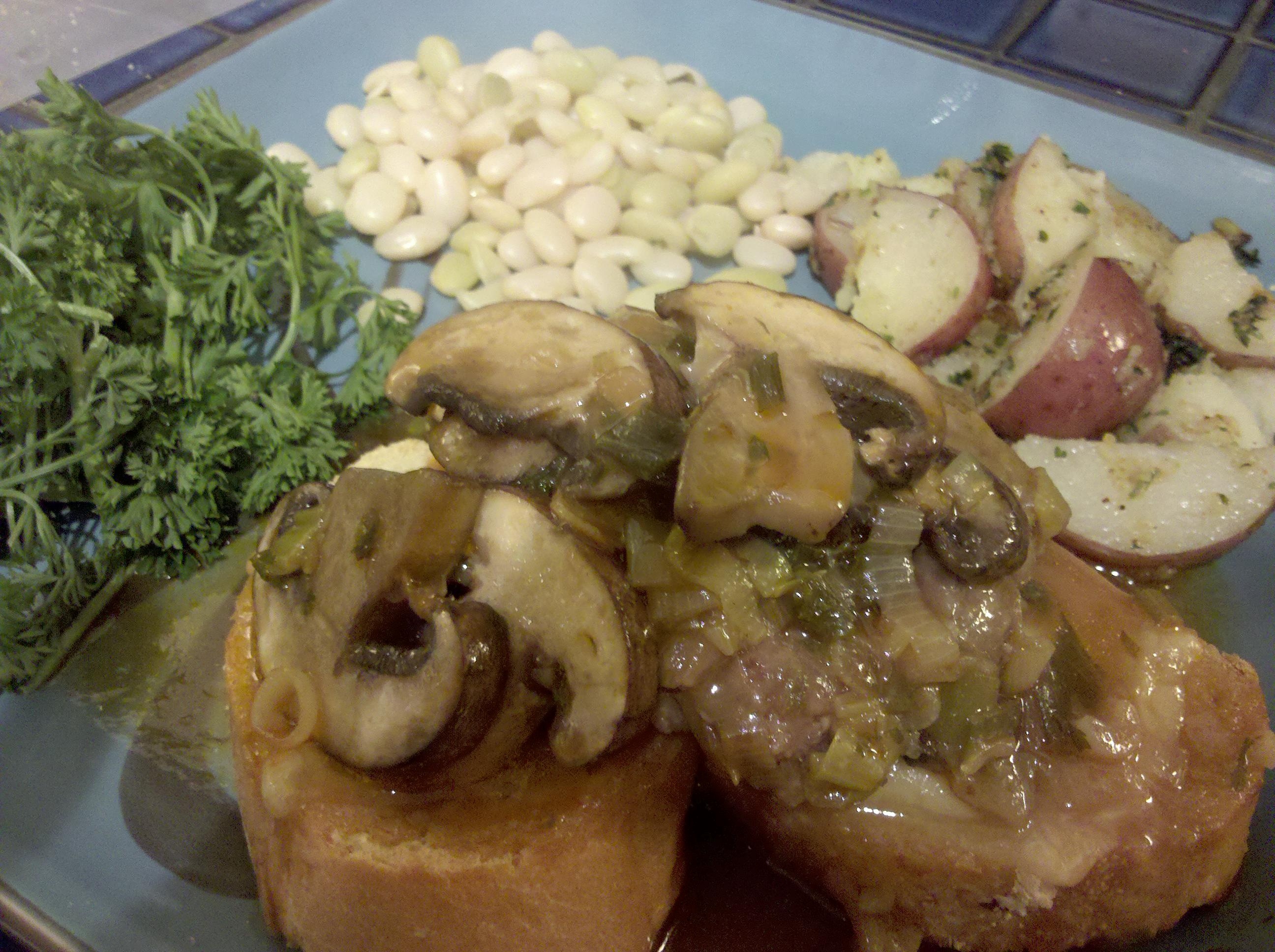 Serve steaks on Cheese Toasts with onion sauce ladled over. Garnish with parsley and Parmesan cheese.