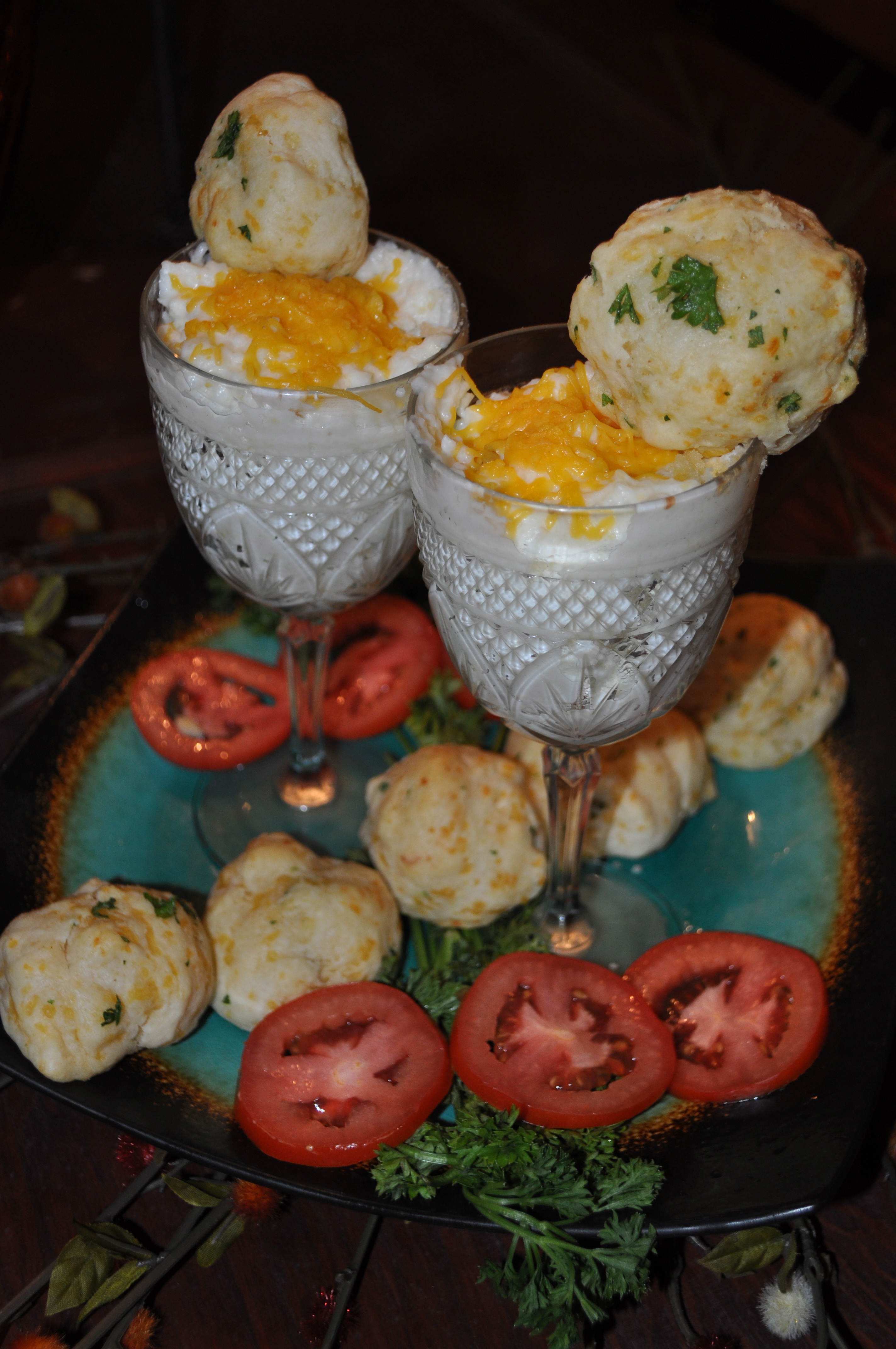 Amy- I do declare, Suz and I loves us some garlic cheese biscuits and can do some damage to a basket of these miniature bites of goodness. We fell in love with these a long time ago at Mrs. Paula’s restaurant, “The Lady and Sons”. I love how they bring the big tray around and serve you these little puffs of heaven and the hoe cakes. We would eat them until we about made ourselves sick. When we started catering lunches for businesses we made these a lot. People just love them and would always choose these for their bread. We would make these by the hundreds. You are going to love how easy these are to make and how fabulous they taste.