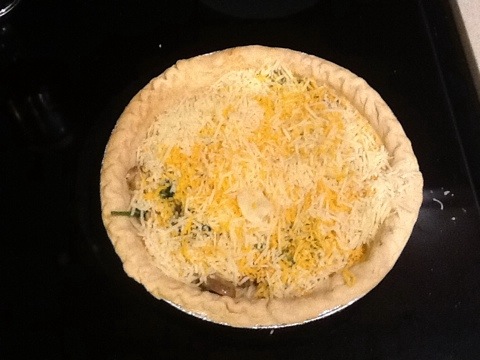 On my way home from work I was trying to come up with something I could cook for dinner without going to the grocery store. Thankfully I had everything at home to make this recipe. If you do not have a pie crust you can definitaly make this without it. Just pour the mixture in a pie plate and bake. Also, if you don’t have sausage you can use bacon, ham, turkey or vegetables. I am serving fruit salad on a bed of salad greens with mine tonight. I will post that recipe after I make it. I hope you enjoy!