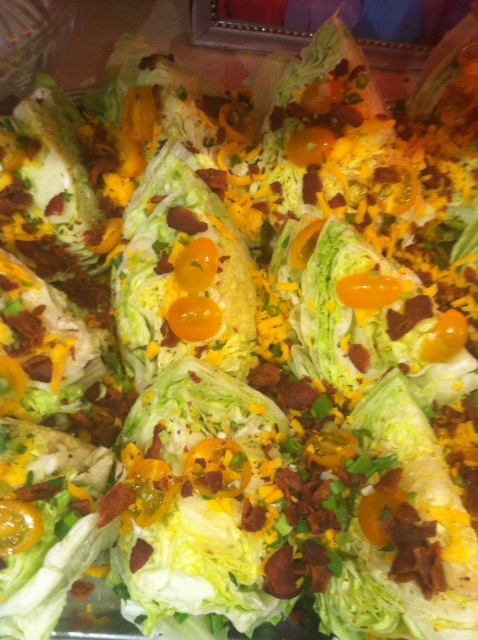Suzette: Little Sissy and I love us a hunk of lettuce especially when it is topped with bacon and floating in a delicious gorgonzola dressing. This makes for a beautiful presentation and is great for serving at a foo- foo ladies luncheon or your Easter celebration. This salad is a cinch to make and it is scrumptious.