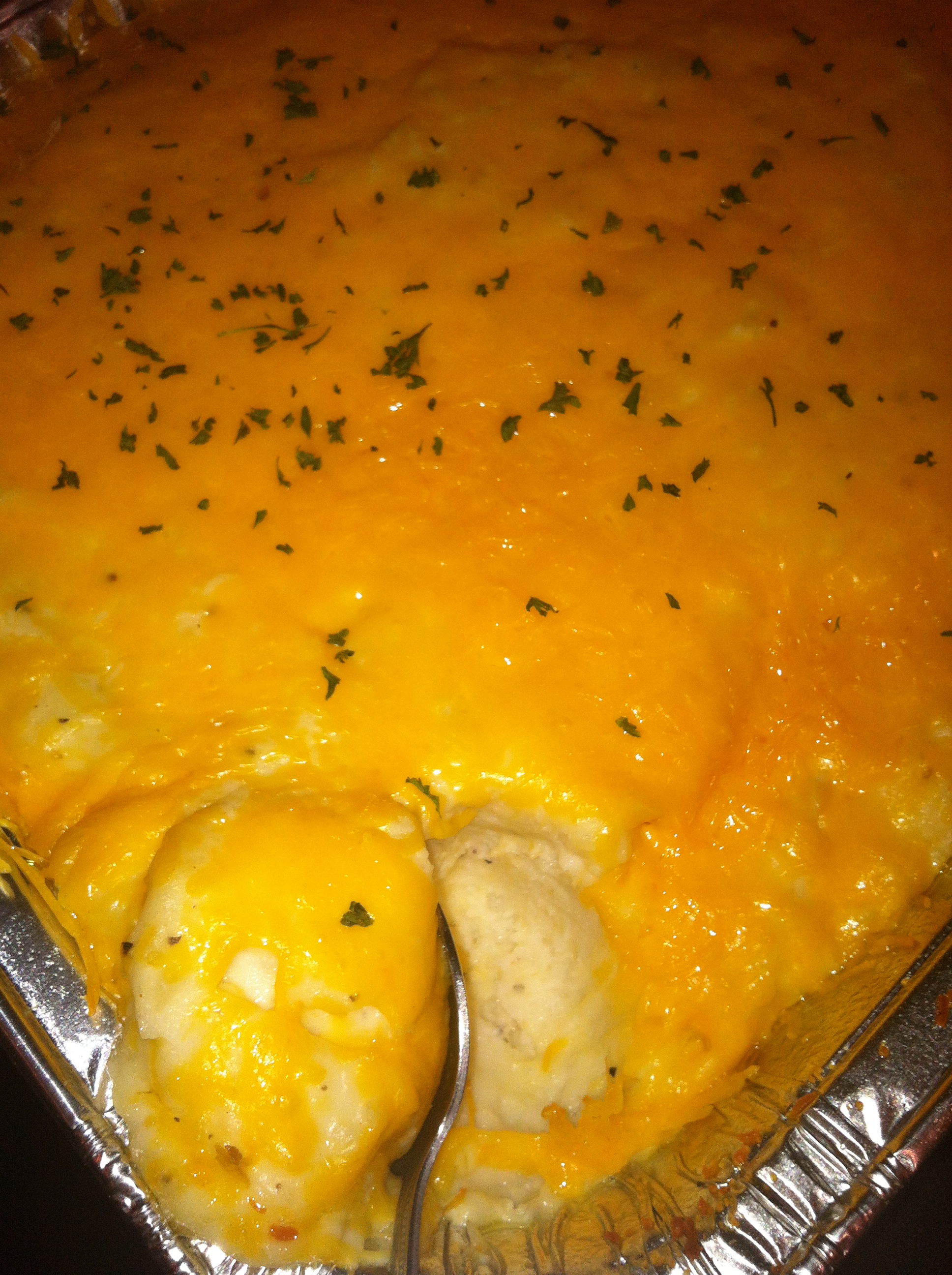 In our opinion, the potato is the most comforting food. So let’s get comfortable. Peel and slice potatoes, the same way you would cut potatoes for French fries. Put 2 big piece of foil on a large baking sheet, making a cross. Place your potatoes and onions in the center of the large piece of foil. Add garlic powder and onion powder. Season your taters with plenty of salt and pepper. Pour cream and butter over potatoes. Seal foil, making a packet and bake in a preheated 350 degree oven for 50 – 60 minutes or until potatoes are tender. Remove from oven, carefully open packet, add your cheese and parsley and return to oven for 5-10 minutes. Serve in basket in the foil packet.