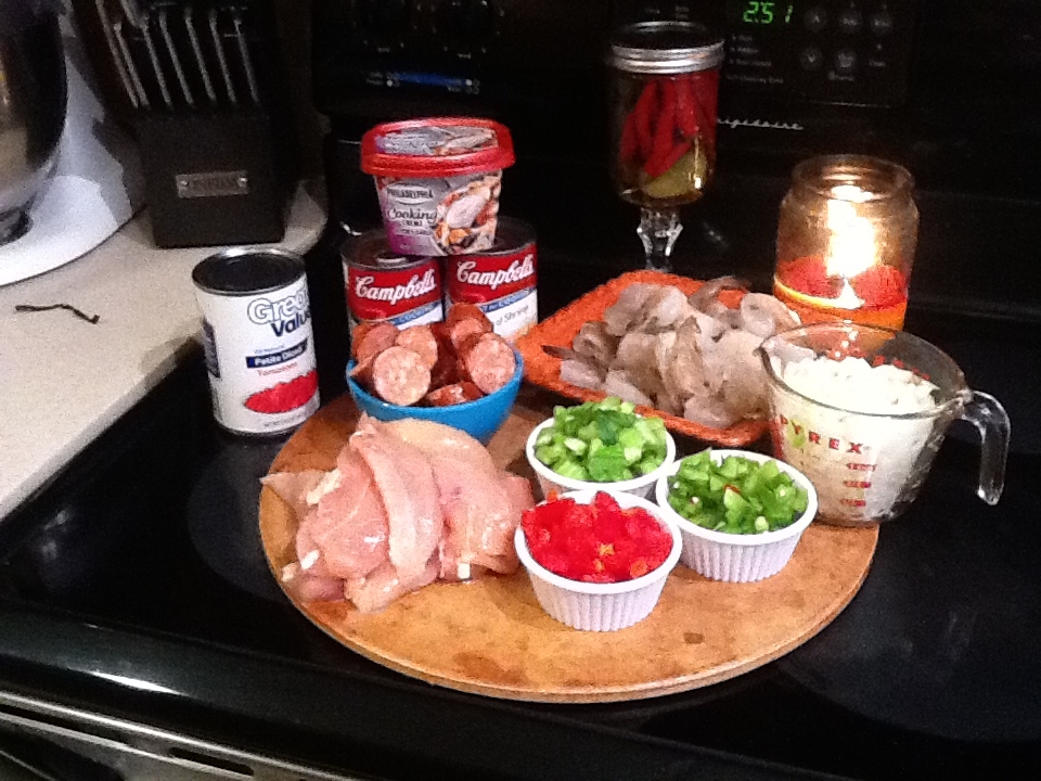 Gumbo has been a traditional Cajun food for generations. In its basic form, gumbo is a soup that is made from a strong stock, various meats (shrimp, chicken, crawfish, sausage, and many others), a thickener (either okra, only roux, or file’ powder), and various vegetables such as celery, bell peppers, and onions. Regardless of how you prepare a gumbo, it should always be served with rice. While gumbo can be eaten at any time (we do), many people enjoy it during cold weather.