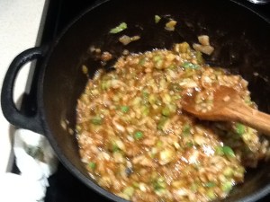 Add the vegetables to the roux and cook for 5 -7 minutes.